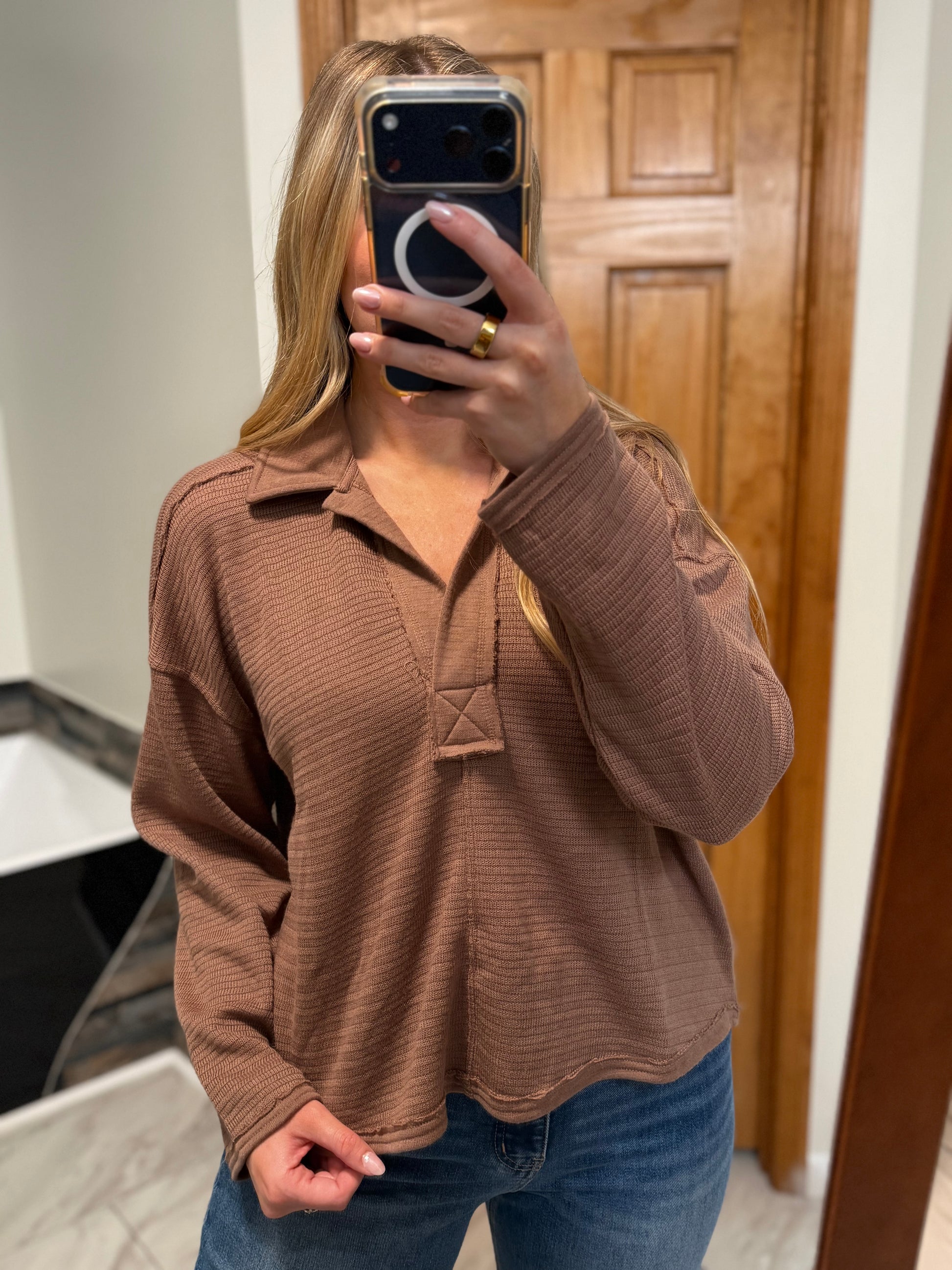 MOCHA COLLARED TOP